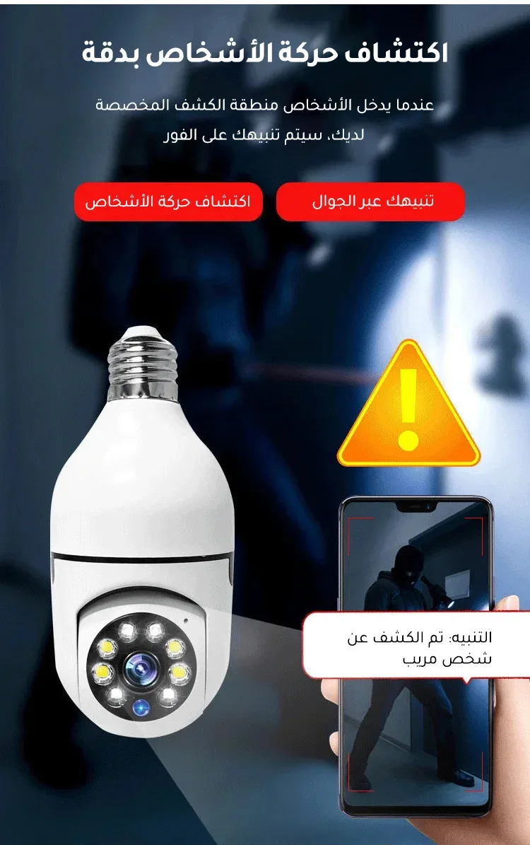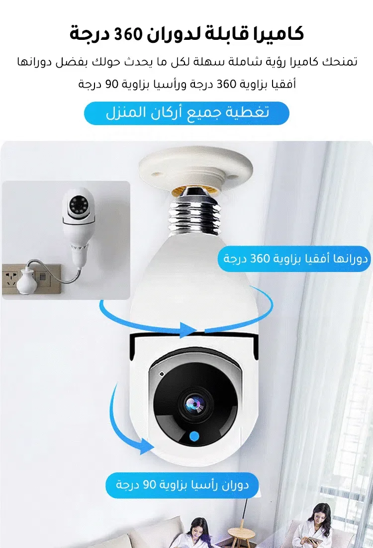كاميرا ذكية اخر اصدار على شكل مصباح للتمويه, دوران 360 درجة في جميع الاتجاهات, دقة 1080 بيكسل و التحكم عن بعد من الهاتف ديالك